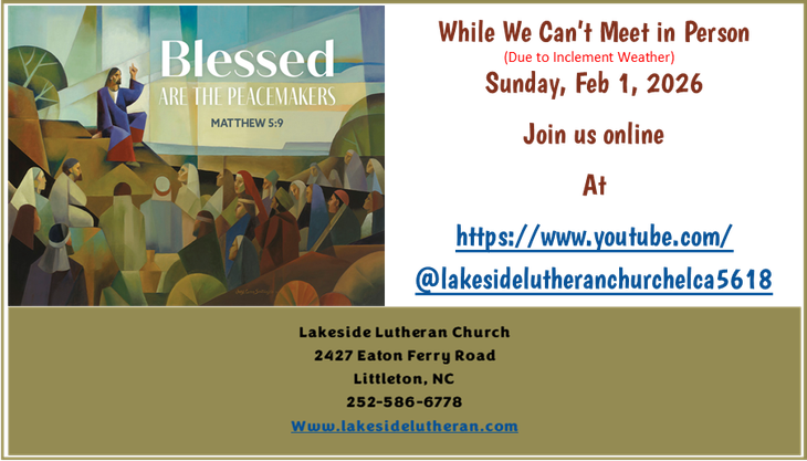 (All Services Live-Streamed on Lakeside Lutheran YouTube Channel)